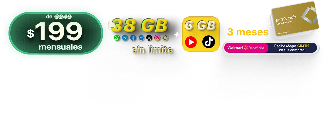 * Chip inicial: $95 (único). Primer pago a los 30 días.
